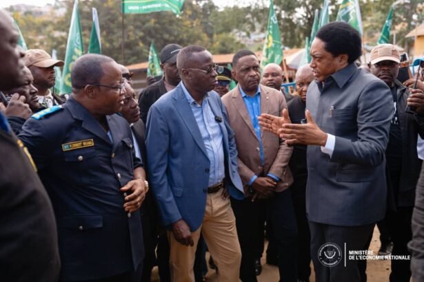 Le vice-Premier ministre congolais de l’Économie nationale, Daniel Mukoko Samba, accompagné du Haut…